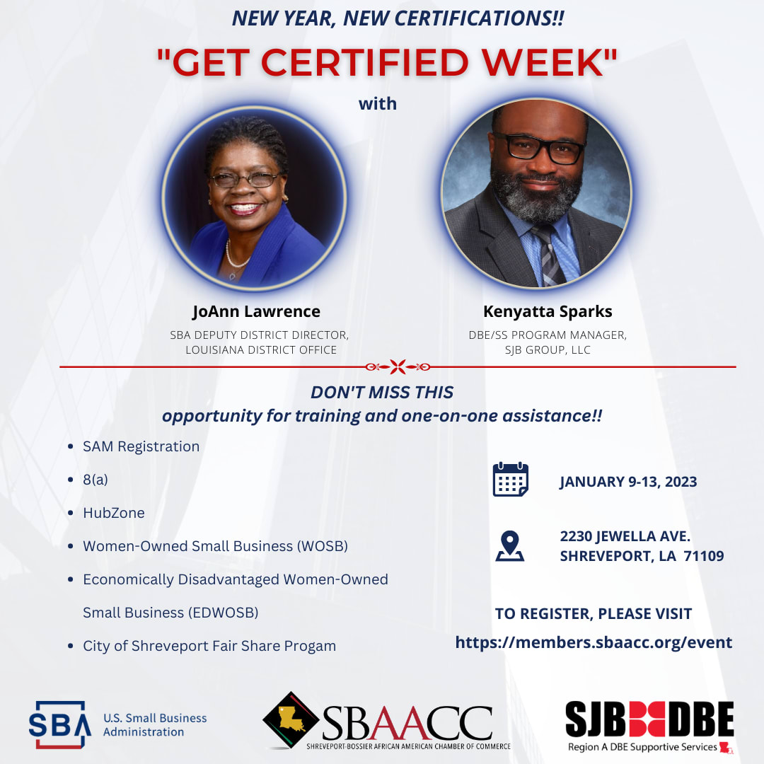 Training and hands-on assistance with SBA and City of Shreveport certifications. Application checklists will be provided to participants in advance of the event. Additional scheduling details will be provided at a later date.Additional Info